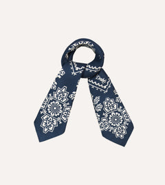 Drake's Trad Silk Bandana / Navy & Ecru
